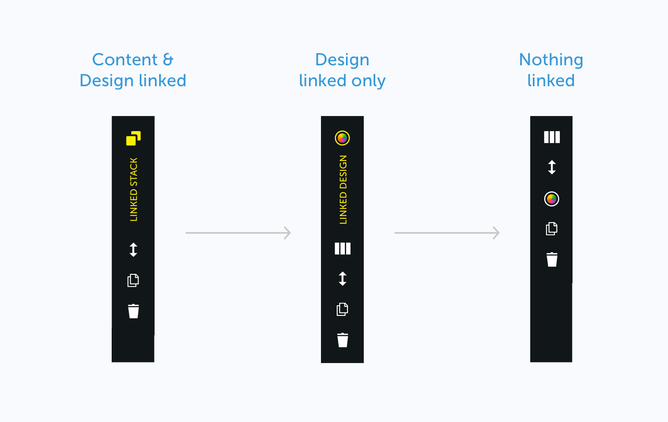 When you unlink the content, the design stays linked, meaning that if you edit that stack’s font, colour and design styles, it’ll update the design of all of the linked stacks (even if they don’t have the exact same content anymore). Or simply unlink the design for a completely disconnected duplicate of the original stack.