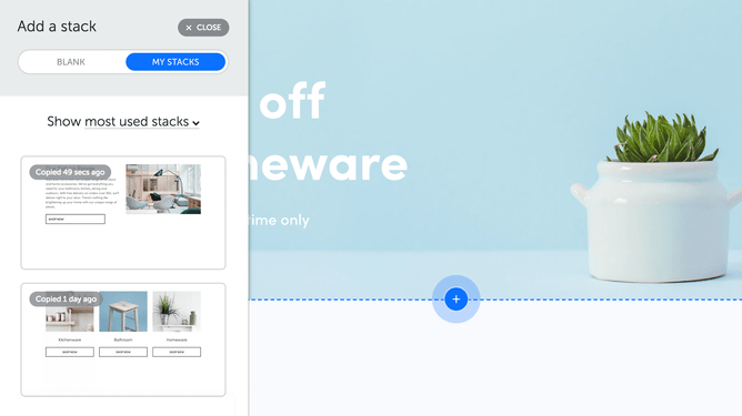 A button-click is all it takes to copy an entire stack and use it again on the same page or any other page. It’s like copy-and-paste for stacks.
