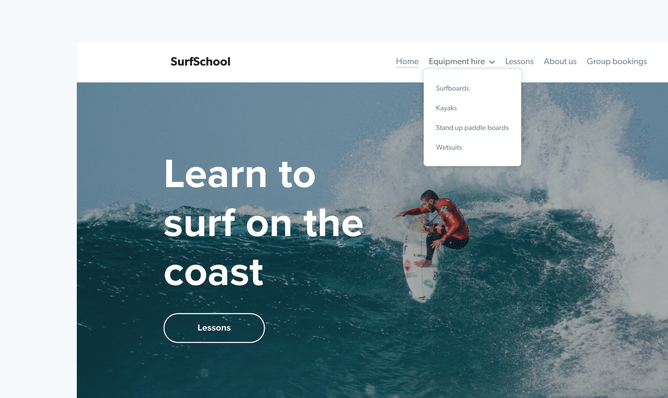 Dropdown menus are also a fast way of showing the services your business offers—accessible from anywhere on the site. If you’re a tourism and/or accommodation provider, you could use a dropdown menu to easily direct and match your customers with what they’re looking for with rooms that are separated by size, type or number of rooms per suite etc.