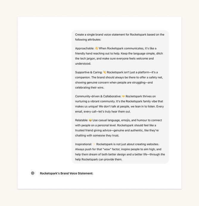 I asked ChatGPT what a brand tone of voice guide should include. It highlighted two key things: