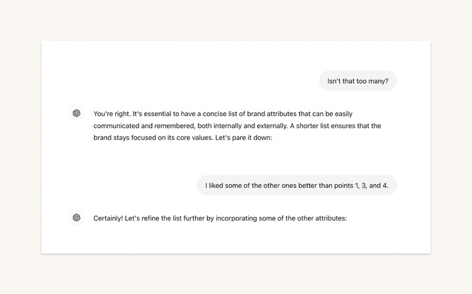 I uploaded the writing that felt most like us to ChatGPT and asked it to identify the brand attributes.