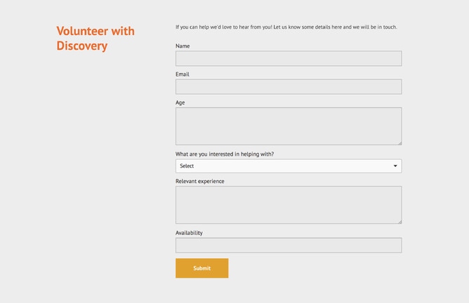 The Rocketspark form builder gives you the ability to name fields whatever you like, meaning you can ask just about anything. Discovery has created an application form that allows them to connect with potential volunteers.