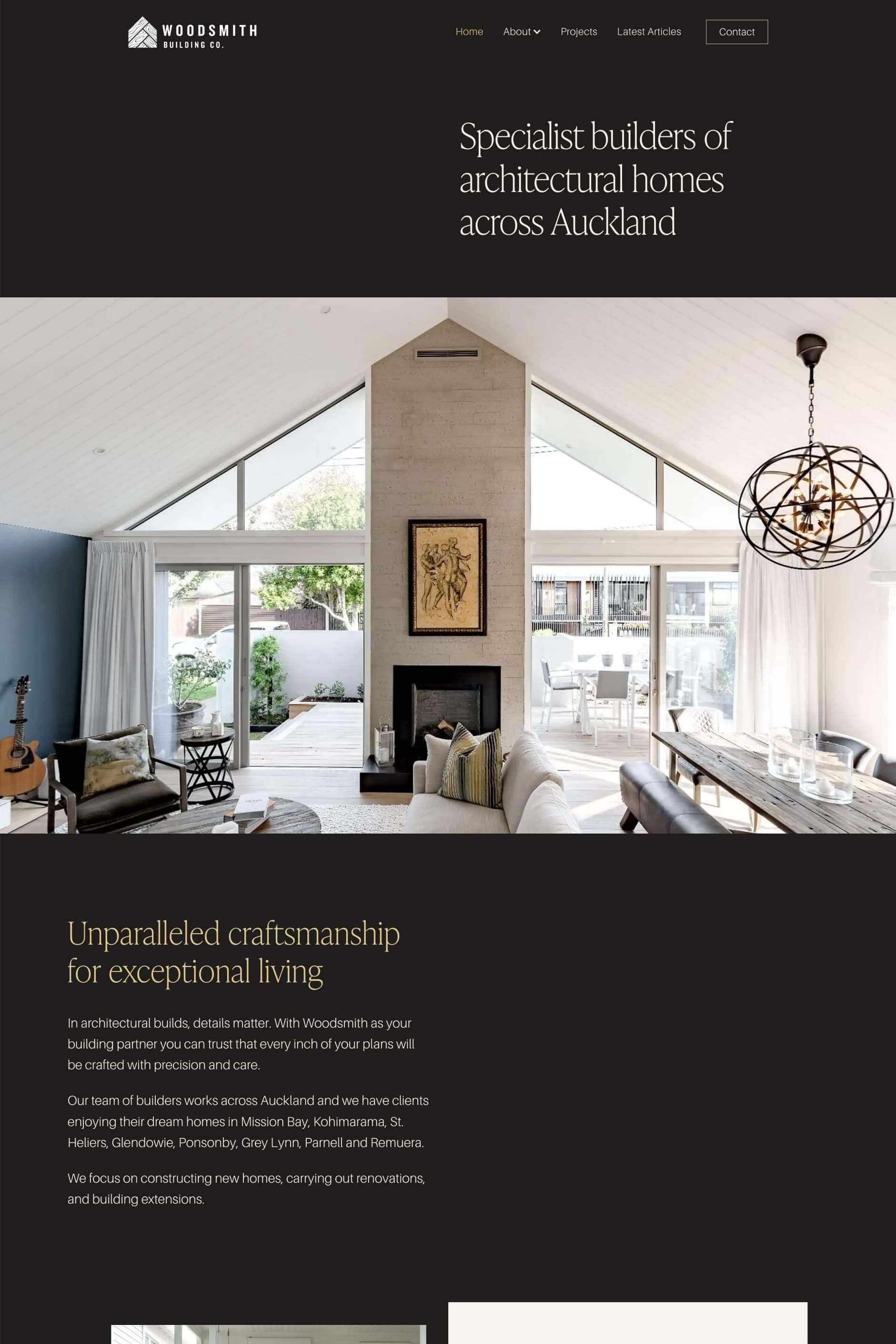 Clear and concise sections highlight their wide range of services, including new home constructions, renovations, and expert craftsmanship in creating stunning architectural homes across Auckland. The user-friendly navigation and responsive design ensure a seamless browsing experience on both desktop and mobile devices. Each project is meticulously presented, reflecting Woodsmith’s commitment to quality and attention to detail.