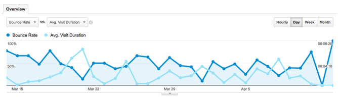 But once you start clicking, a world of data opens up to you. Click “Hourly” button in the top-right corner and you can instantly see all the same data but in hour-by-hour intervals to see what time of day you’re getting the most traffic. Or click on the “Visits” menu in the top-left corner and you can change it to another option like, say, “Bounce Rate” (that’s the percentage of users who leave immediately after visiting just one page). Then go to the adjacent “Select a metric” menu and choose something like “Avg. Visit Duration” and you can compare those two metrics side-by-side.