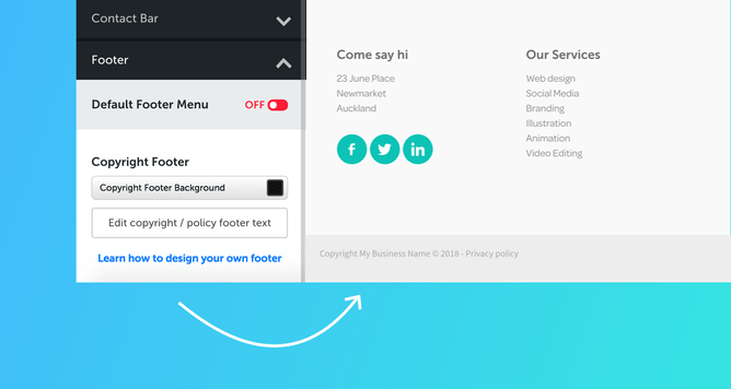 We’ve added a neat switch that allows you to turn the default footer on your website on and off. With this simple new feature, you can change the way your pages feel - literally.