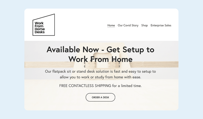 Work From Home Desks is a brand new ecommerce store that opened during New Zealand’s level 4 COVID-19 lockdown. They sell high quality flat-pack birch-ply desks that can be assembled in minutes without any tools and adjusted to multiple sit or stand heights. The desks range from $379 - $579 and are 21-24kg’s when boxed (1200mm x 880mm). This is significantly heavier and larger than an average ecommerce package and more expensive to ship—and yet they’re still able to offer free shipping. Why did co-founder Joe Bradford decide on limited-time free shipping? Joe said that as a new brand in the market, offering limited-time free shipping helps remove a potential barrier for buyers on the fence. “We advertise the offer at the top of our homepage so concerns about shipping costs are eliminated right up front,” says Joe.
