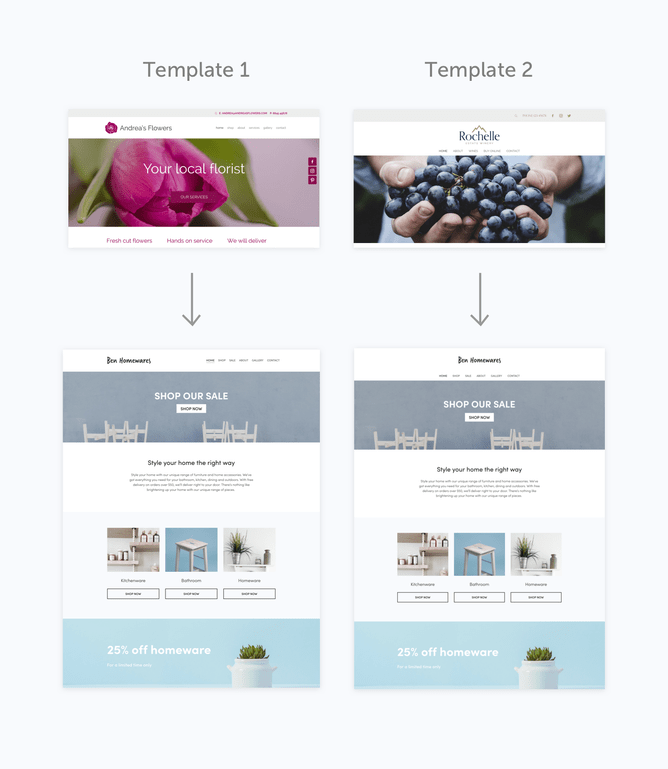 Let’s be honest, we’re all a little prone to judging a book by its cover and in the world of web design, it’s no different. But don’t get swayed by the images or colours on a template. Just because a template has pictures of a florist doesn’t mean it won’t be suitable for a builder. With a few tweaks and a personal touch, you can mould a template to fit any type of business.