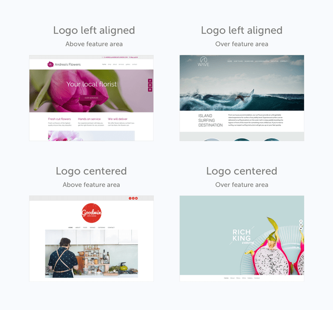 The secret to picking a template lies in the header section of your website (the bit at the top of the page where your logo and menu sit). This is where you need to think about how you want your logo and menu positioned. Do you want your logo centred, left aligned or overlaying an image? Likewise, do you want your menu above, below or on top of your main feature area image? While it largely comes down to personal preference, this decision will dictate the template you choose.