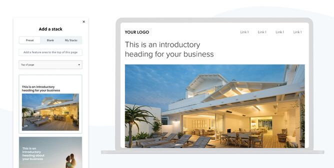 If you ever need inspiration for the bits and pieces of a page, don’t forget Preset Stacks that you have access to on a blank template. Preset Stacks is a library of already-designed stacks, conveniently categorised by use. You also have access to all your most used and recently edited stacks when you add a new stack. For stack layouts you want to put in use repeatedly on a blank template, utilising Preset Stacks and your own frequently-used stacks can be a great way for fleshing out your site quickly.