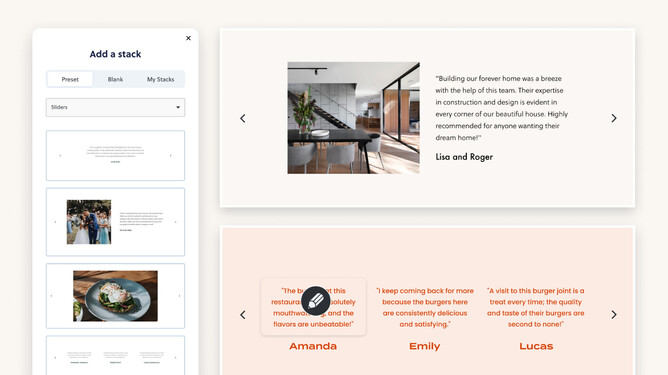But what if you’re a designer and want more freedom to design what you see in your mind? We thought long and hard about this one. Designers want to dream up an exact design, but then when they hand the keys over to their clients, they want it easy to update within the design they’ve created. That’s why we’ve created the Slider Maker—a designer-exclusive way to craft any layout you want and convert it to a Slider that’s then easy for clients to replace text, photos and add more slides with the same consistent layout you created for them.