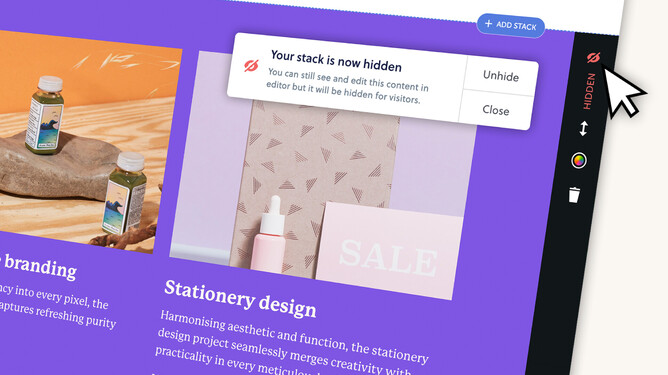 Hiding stacks isn’t just handy for Sliders. This feature has a bunch of use cases like being able to draft up a seasonal stack and setting it live when you’re ready. Or if there’s something you want to hide for a time and bring back at a later date.