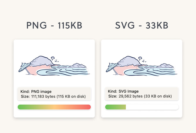 In our testing while we were building our new picture block with SVG support, we found that illustrations created as SVG files were on average 10 times smaller in file size than PNG images. This is a significant pagespeed benefit!