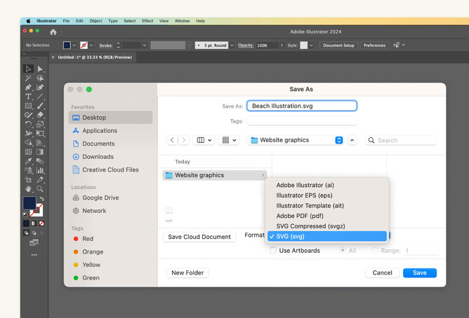 For designers: If you're handy with design software like Adobe Illustrator, creating an SVG is a cinch. Simply design your artwork and export it as an SVG file.