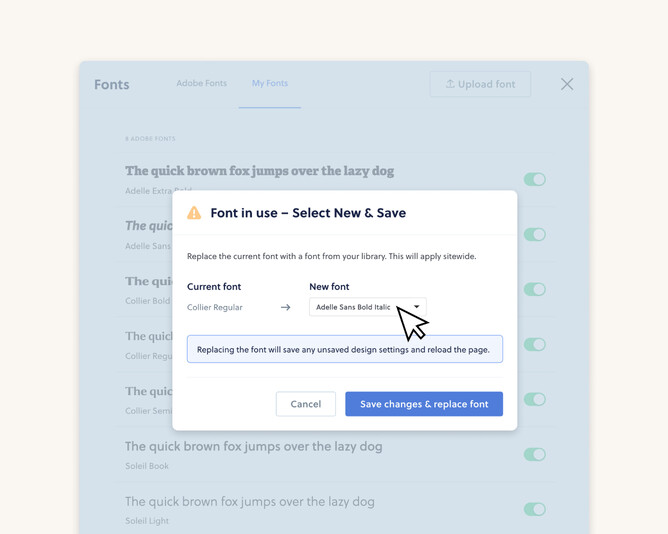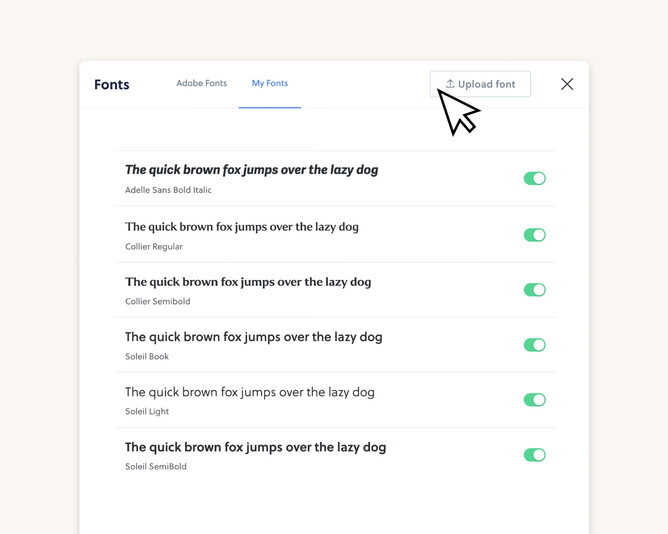Our expanded library goes beyond Adobe. Now, you can bring in any font that speaks to your brand, from indie foundries to Creative Market gems, and even those amazing free Google fonts. The sky's truly the limit.