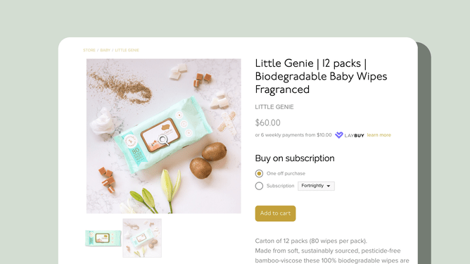 You set which products or services are able to be purchased on subscription. When shoppers add eligible subscription products to their cart they can choose a delivery frequency from the options you have provided such as weekly, fortnightly, monthly, every 2 months, every 3 months or every 6 months.
