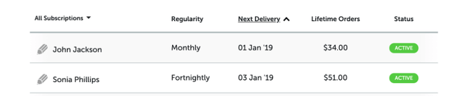 As the merchant, with the customer's permission you'll be able to adjust the subscription renewal date if required to suit your packing and delivery schedule, or for the customers convenience. Their first order will send straight away, then on the renewal date their payment card will be charged automatically and you’ll be notified that another subscription delivery is ready to send. You can edit their next billing date An order confirmation email for first and subsequent recurring orders will also be sent to the customer at the same time.