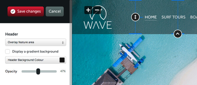 It’s now possible to overlay your website’s header (logo and menu) onto your feature area (large hero photograph at the top of the page). This is a popular design technique and where some designs can feel top-heavy with a solid band of colour at the top, this template feels light and open.