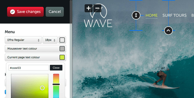 The top section of any web page is key real estate and is critical to creating a great first impression on your website. Most modern home pages consist of a logo, navigation menu, main heading and large photo—without having to scroll down to see them (not that scrolling is bad, it’s just good to get the important stuff near the top). Arranging this combination of elements in a beautiful way without scrolling, can require some fine tuning to get it juuuust right. That’s why we’ve just launched a powerful-yet-beautifully-simple suite of design tools to give more control of the way your logo, menu and feature area text are displayed on the page.