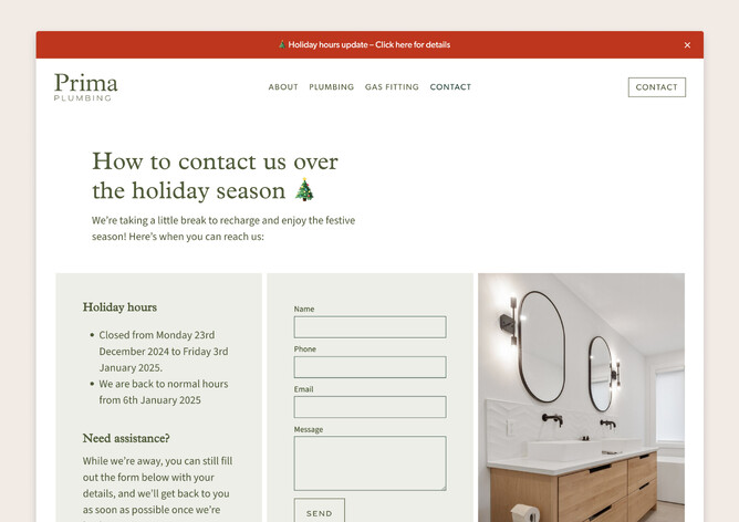 Opening hours: Let customers know when your doors (physical or virtual!) will be open. If you’re closing or adjusting your usual hours, pop those details on your contact page and footer, so it’s easy for customers to find.