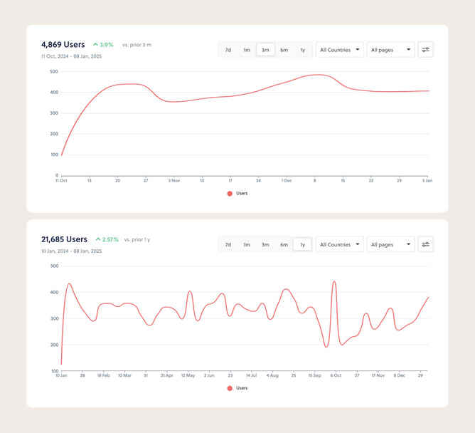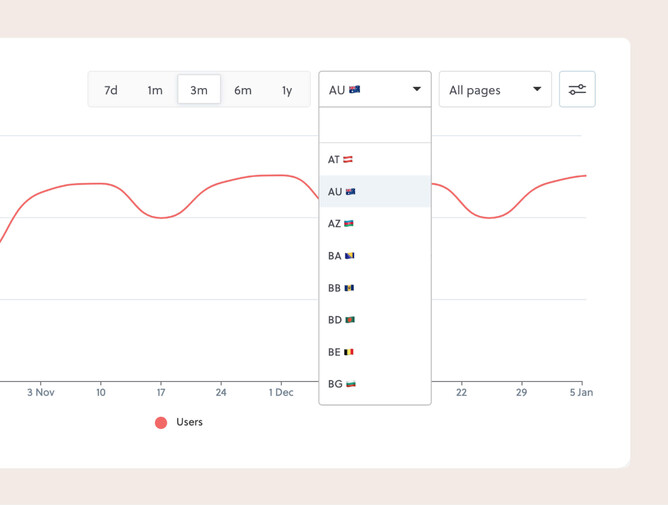 Country filtering lets you see where your visitors are coming from—across the globe or just down the road. If you’re a local business, filter to your country and get straight to the stats that matter to you. Or, if you’re growing internationally, see how your audience shapes up across different regions.