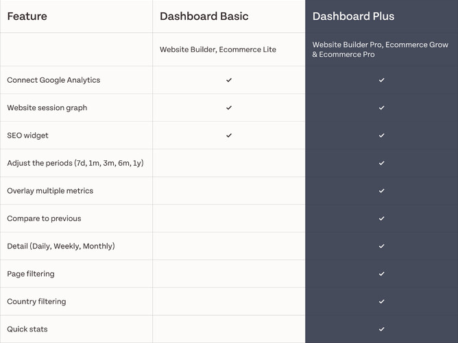 On the Website Builder and Ecommerce Lite plans, you’ll get website session reporting for the last 30 days with comparisons to the previous month.
