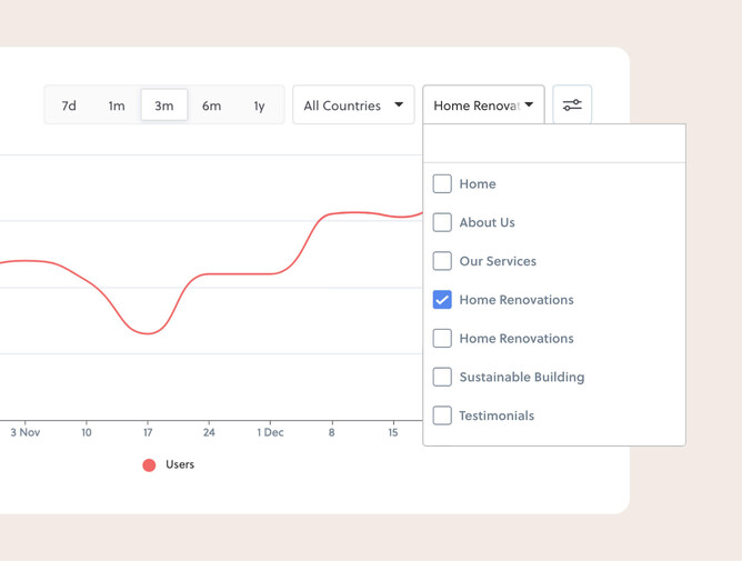 Not all pages are created equal, right? With page filtering, you can find out exactly how each page is performing. Is your homepage smashing it? Is that blog post you forgot about suddenly pulling in traffic? Focus on the pages that are working hard for you—and give a little love to the ones that need it.