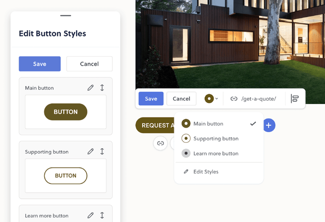 You can now set up saved button styles—just like your brand colours and fonts—and reuse them across your entire site.