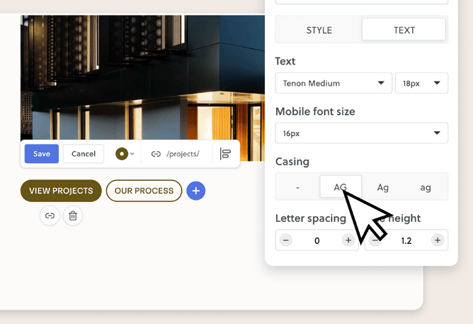 You can now choose how button text is styled—like ALL CAPS or Sentence case—as part of the style itself. That way, your client doesn’t have to remember to type things a certain way. Just pick the casing style once and every button using it will follow suit.