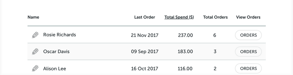 Get clear visibility of your top customers, sorted by total spend or total orders. Customer data is exportable to a CSV file for slicing and dicing in your favourite email marketing software, spreadsheet software or reporting software.