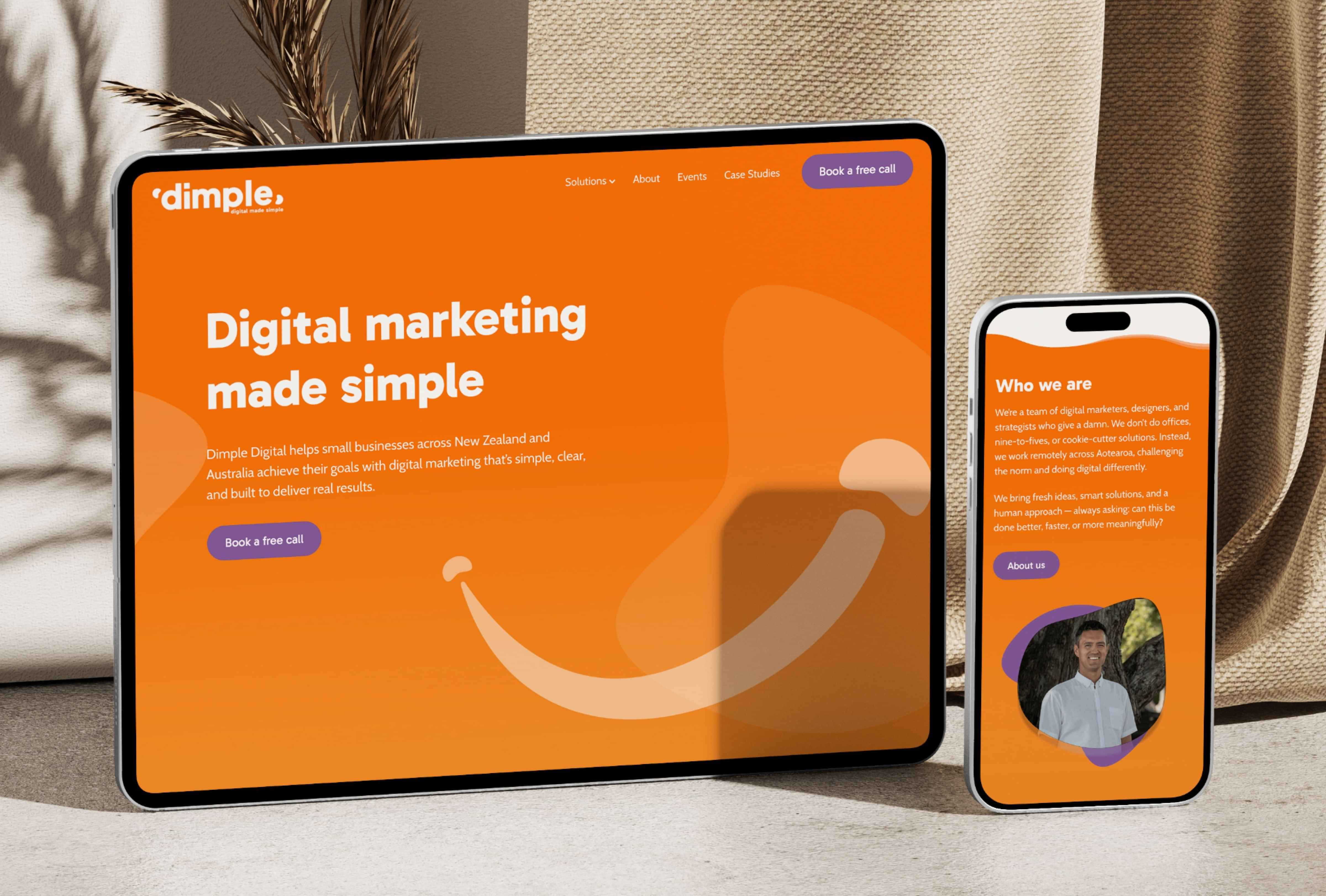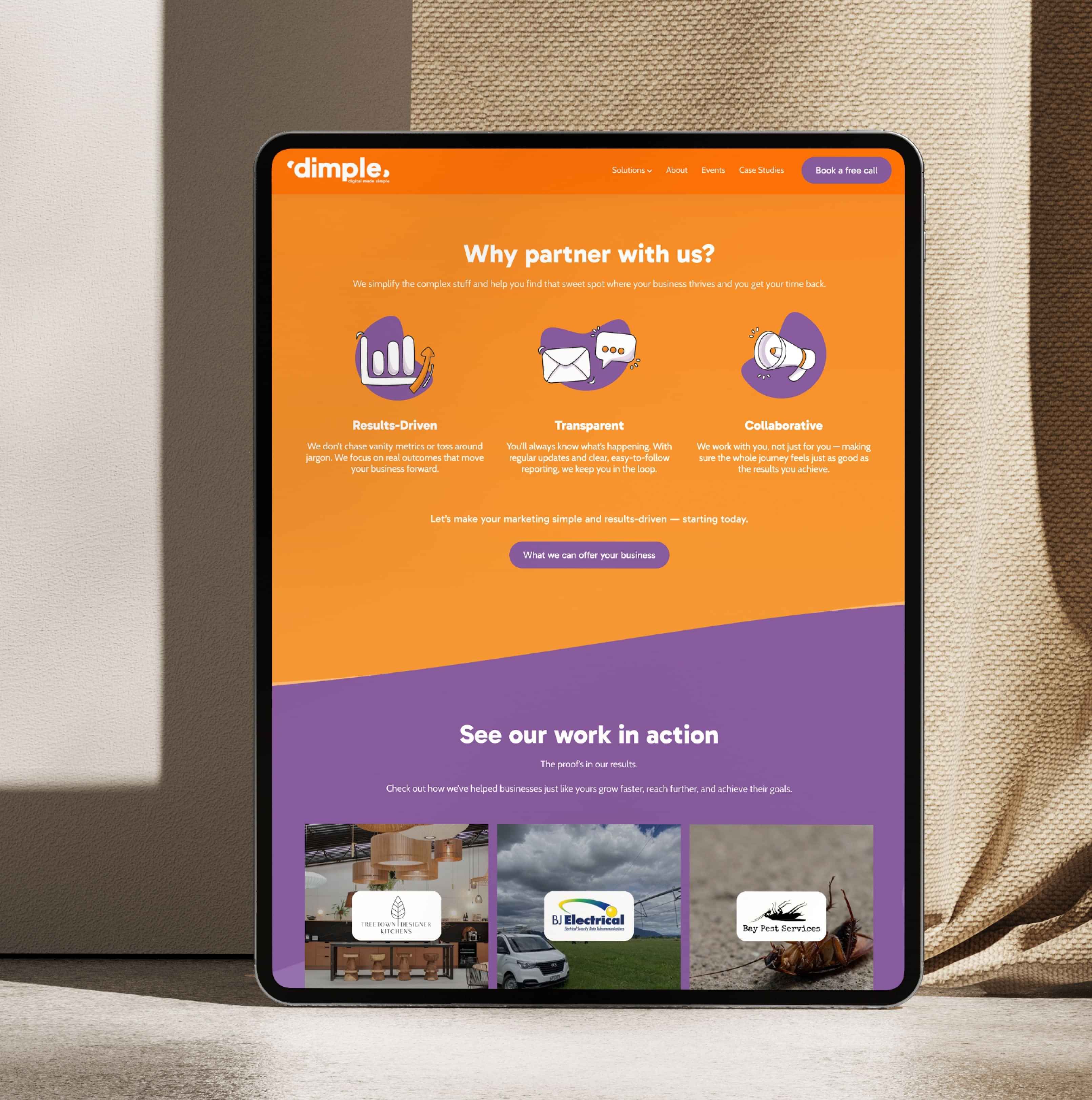 Each page has been carefully structured to guide visitors through Dimple’s services, team and work, with clear calls to action and a consistent visual rhythm throughout. The copy is concise and well-paced, allowing the design to breathe and the message to land effectively.