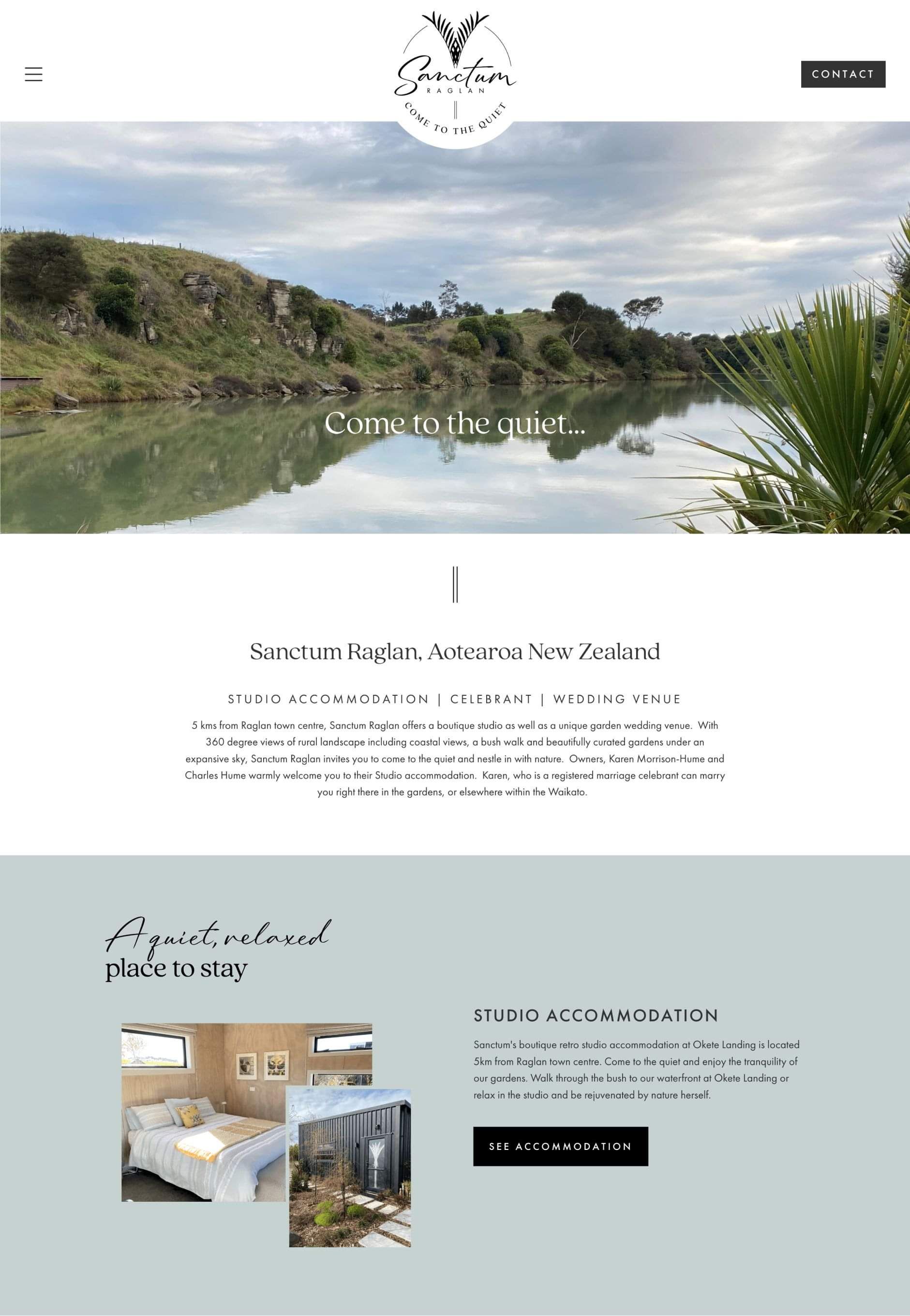 Sanctum Raglan website uniquely uses the brand touch points through the site, but a key light is how it uses creative typography pairings and uses a layered image effect to highlight their three main service offerings.