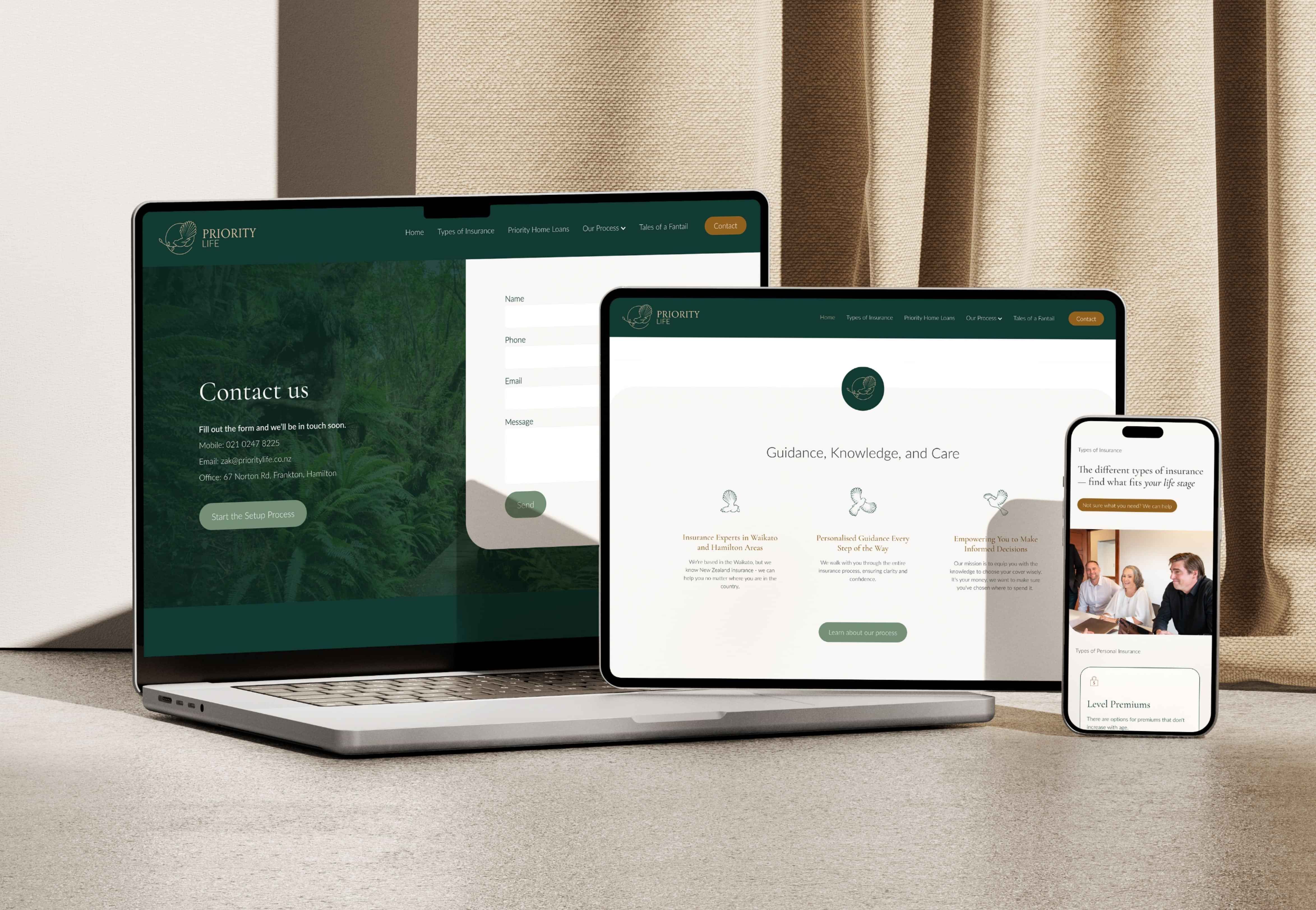 From the moment you land on the site, it feels warm, welcoming, and trustworthy. The soft colour palette, clean fonts, and plenty of space all work together to reflect Priority Life’s calm and caring approach.