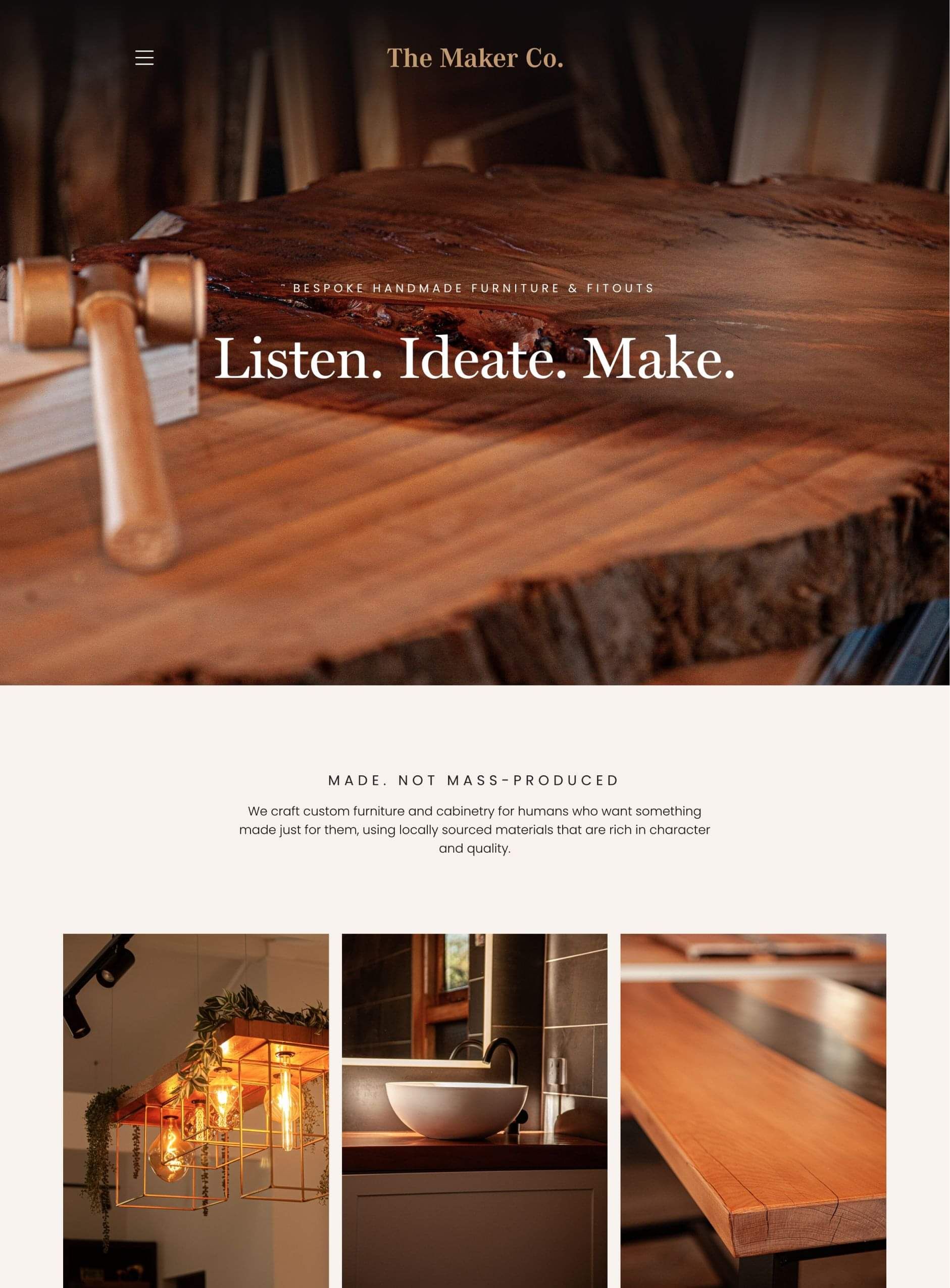The TreadTech website demonstrates excellent professionalism, showing high quality images and photos of the decking process and the decking outcomes, supported by strong call to actions and a great lead capture form for getting a free quote. The first impressions of the Jackie O Photography and The Maker Co websites are captivating with their stunning photography and typeface choices, making you want to explore the sites further.