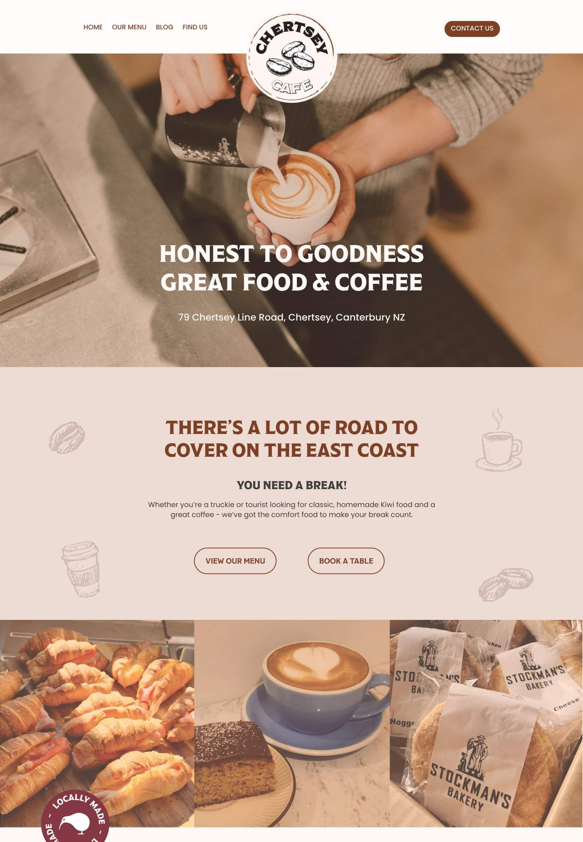 Chertsey Cafe: This site weaves the cafe's logo and branding beautifully throughout the design, creating a cohesive and unique look. The thoughtful layout ensures each section flows naturally, making it super easy to navigate.
