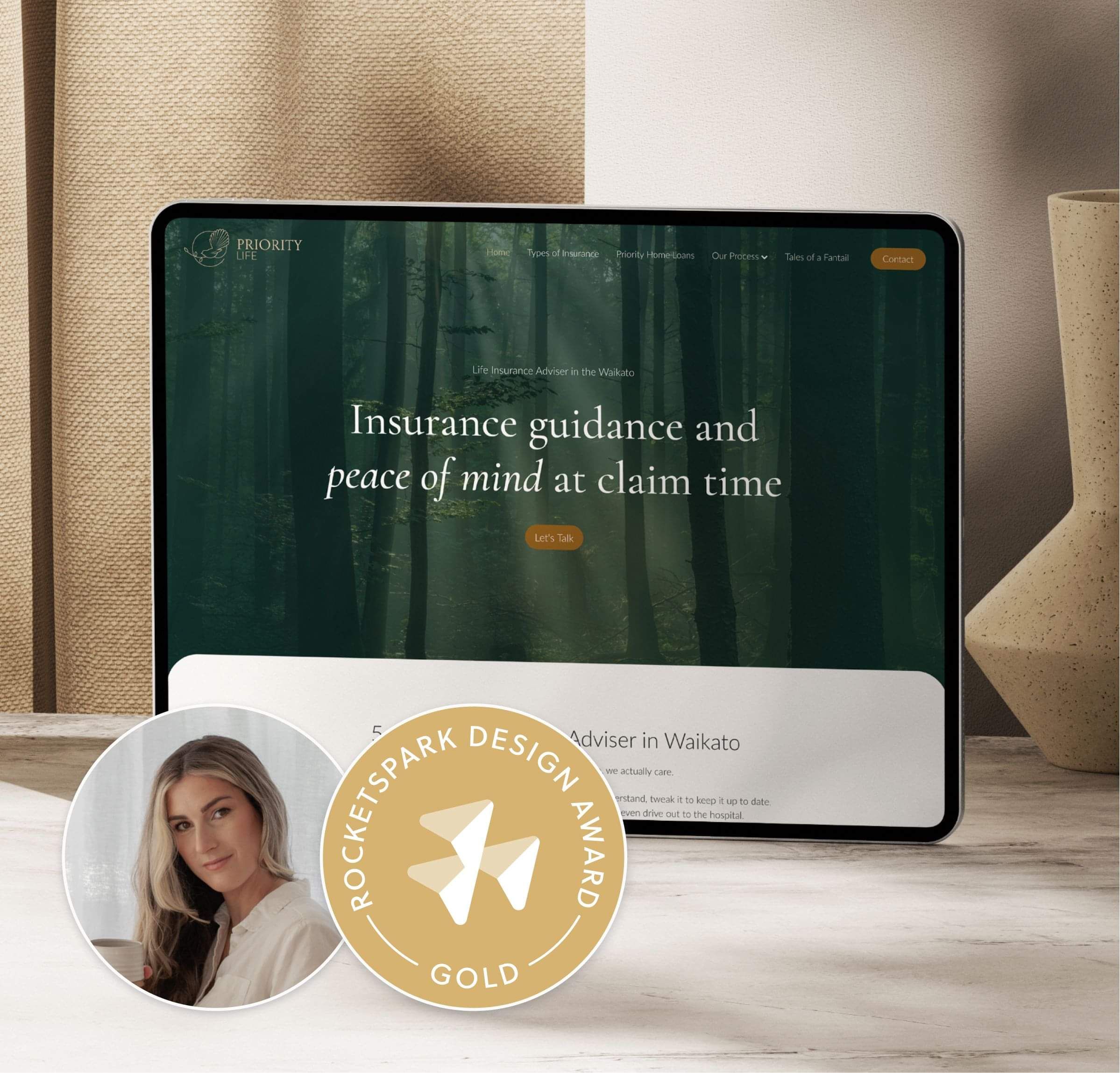Winning a Gold Rocketspark Design Award for her client’s site, Priority Life, gave her added validation and confidence that she’s on the right track.