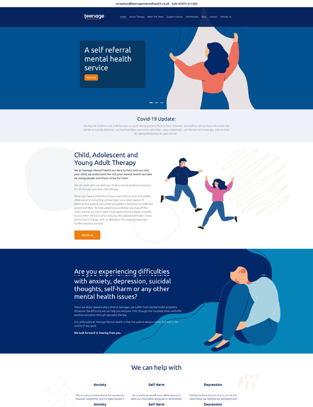 The background step-gradients via the lighter blue to a light background, and then back again at the end of the page to get the impact of the dark background without overdoing it. This gives the viewer a calming, yet engaging scroll experience. The bold headings feel welcoming when matched with the healthy sized paragraph text.