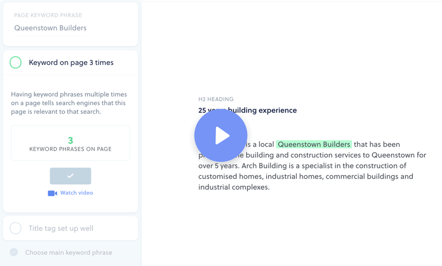 Flint steps you through the process and helps you by suggesting keywords and content for your headings and paragraphs.