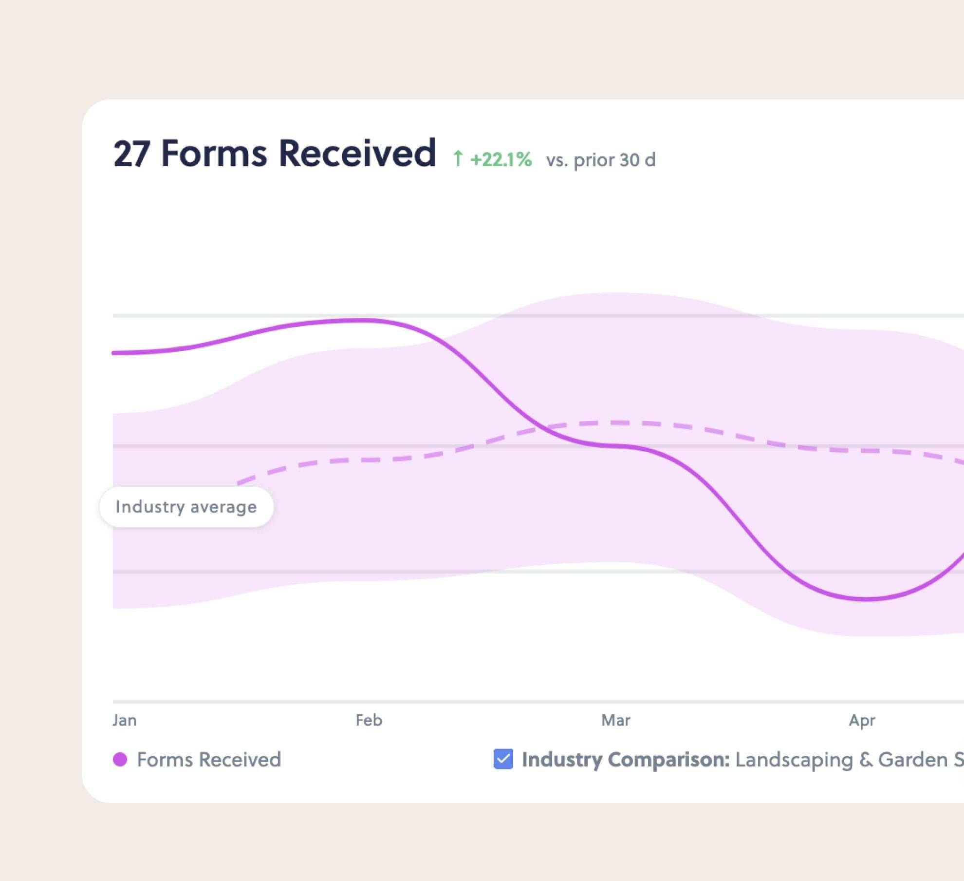 Toggle "Compare to Industry" on your dashboard graph to see your performance line against the industry median over time. Spot whether you're closing the gap — month by month.