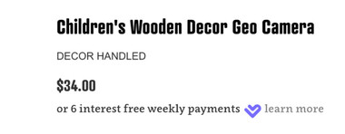 Some text on every product page explains that buyers can pay over 6 interest free weekly payments.