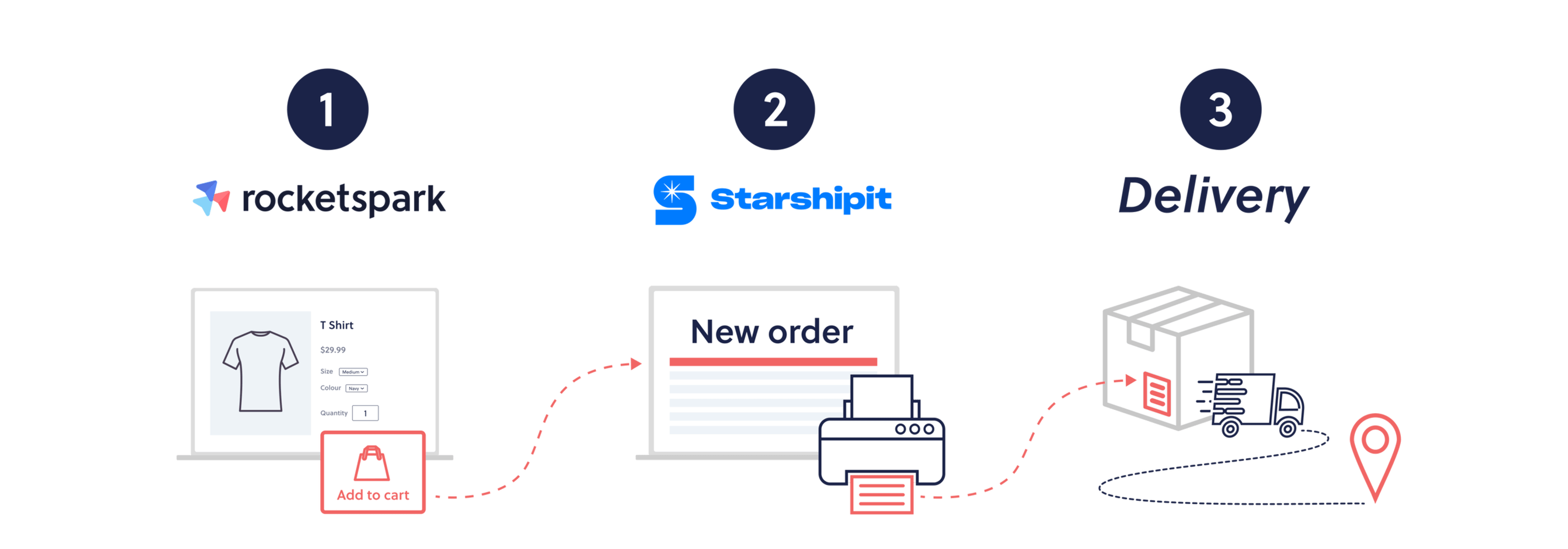 Integrate your Rocketspark online store with Starshipit or eShip and deliver more products to more people with an easy and intelligent fulfilment system that does all the heavy lifting for you