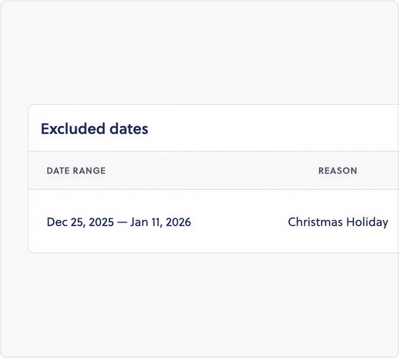 Closed for the holidays? Taking a break? Just block those days so no orders sneak in.