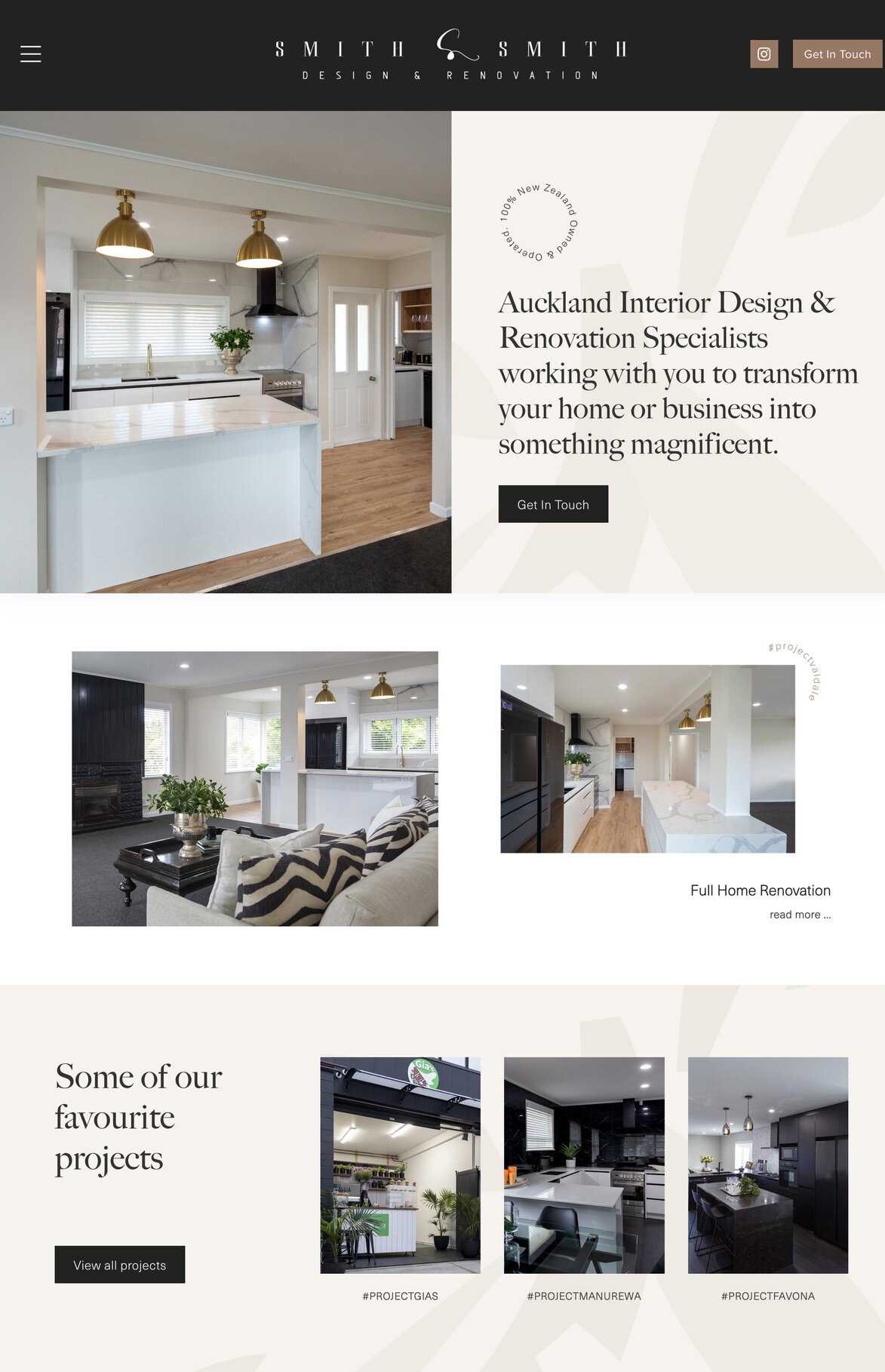 Each page is consistent in style fitting under the same creative umbrella, yet each page still looks unique and has its own visual flair which makes the entire website engaging. The earthy colour palette combination of sand, gold, charcoal and green adds to the sophistication of the website, whilst still allowing the images to pop from their backgrounds.