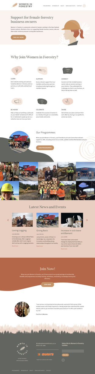 Through thoughtful feminine design, Women in Forestry by Frank communication is Rocketsparks site of the month for May 2021. In an industry dominated by male perception and association, this website has been well designed to cater for its target audience. From the moment you load the page it gives the sense of an inviting and welcoming approach through its calming and warm colour palette and hand crafted illustrations.