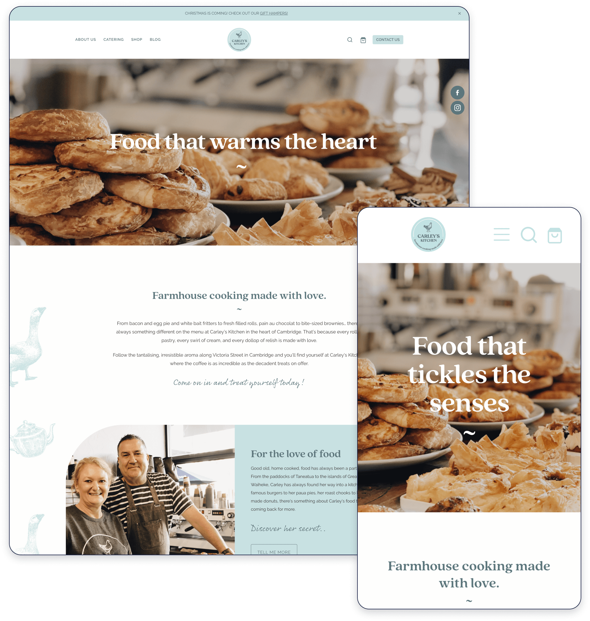 Carley's Kitchen’s website has a professional polish, mastering the fundamentals of design with amazing spacing and thoughtful layout. The website extends a warm welcome to visitors with captivating photography that captures their culinary delights and great customer service.